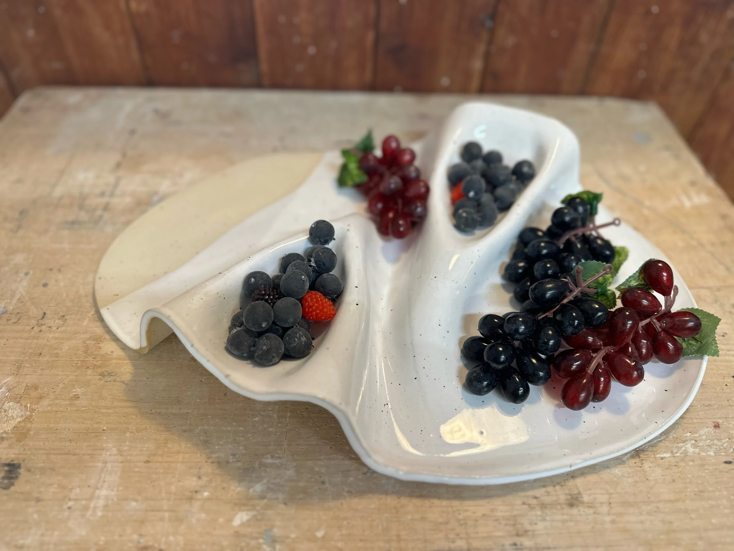 Hier siehst du meine hangetöpferte Antipasti-Platte. Perfekt für besondere Anlässe oder um sonst langweilige Speisen schön anzurichten.