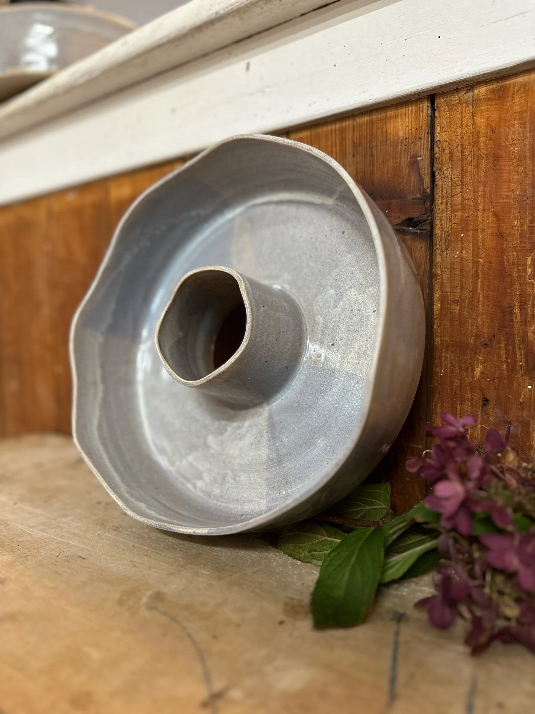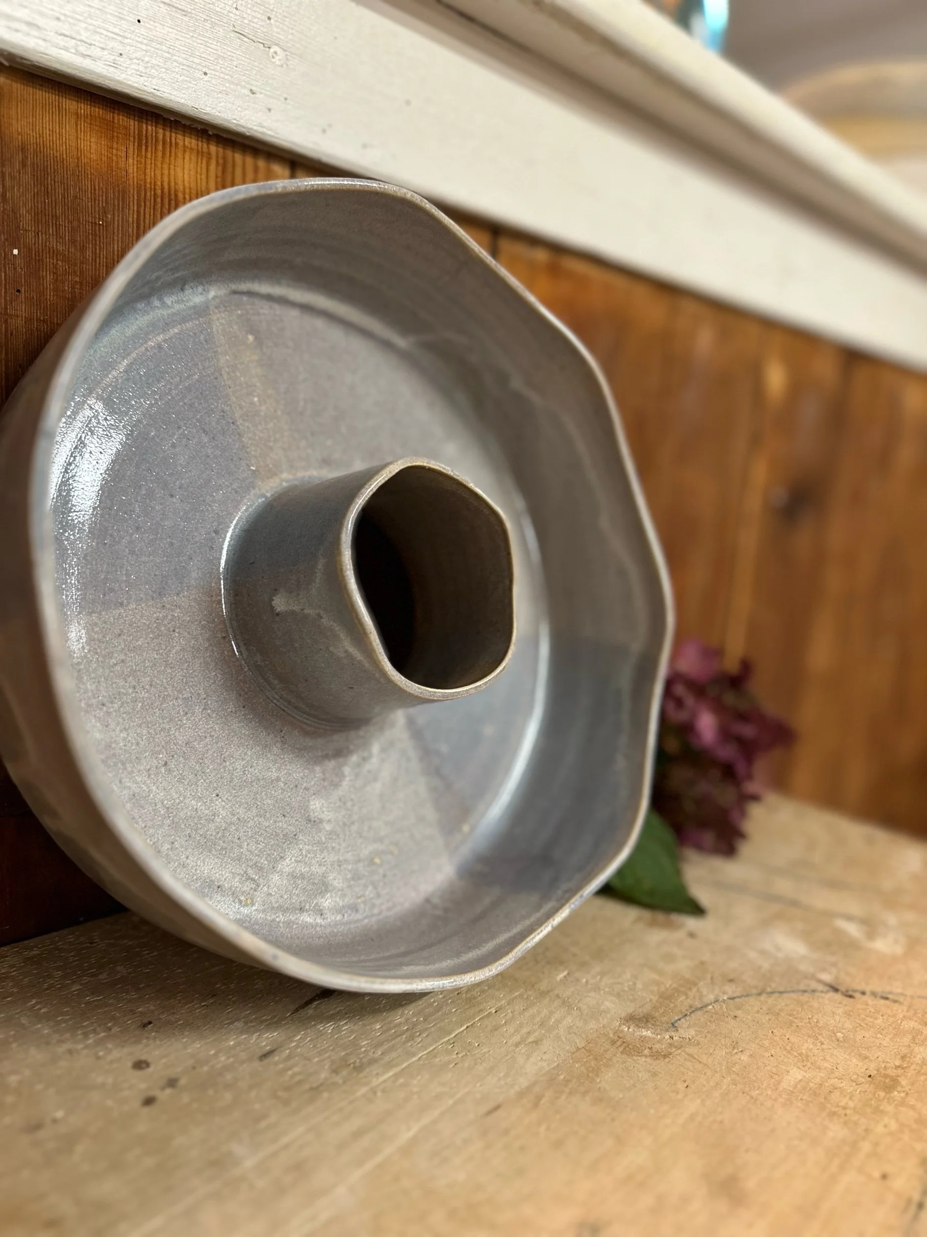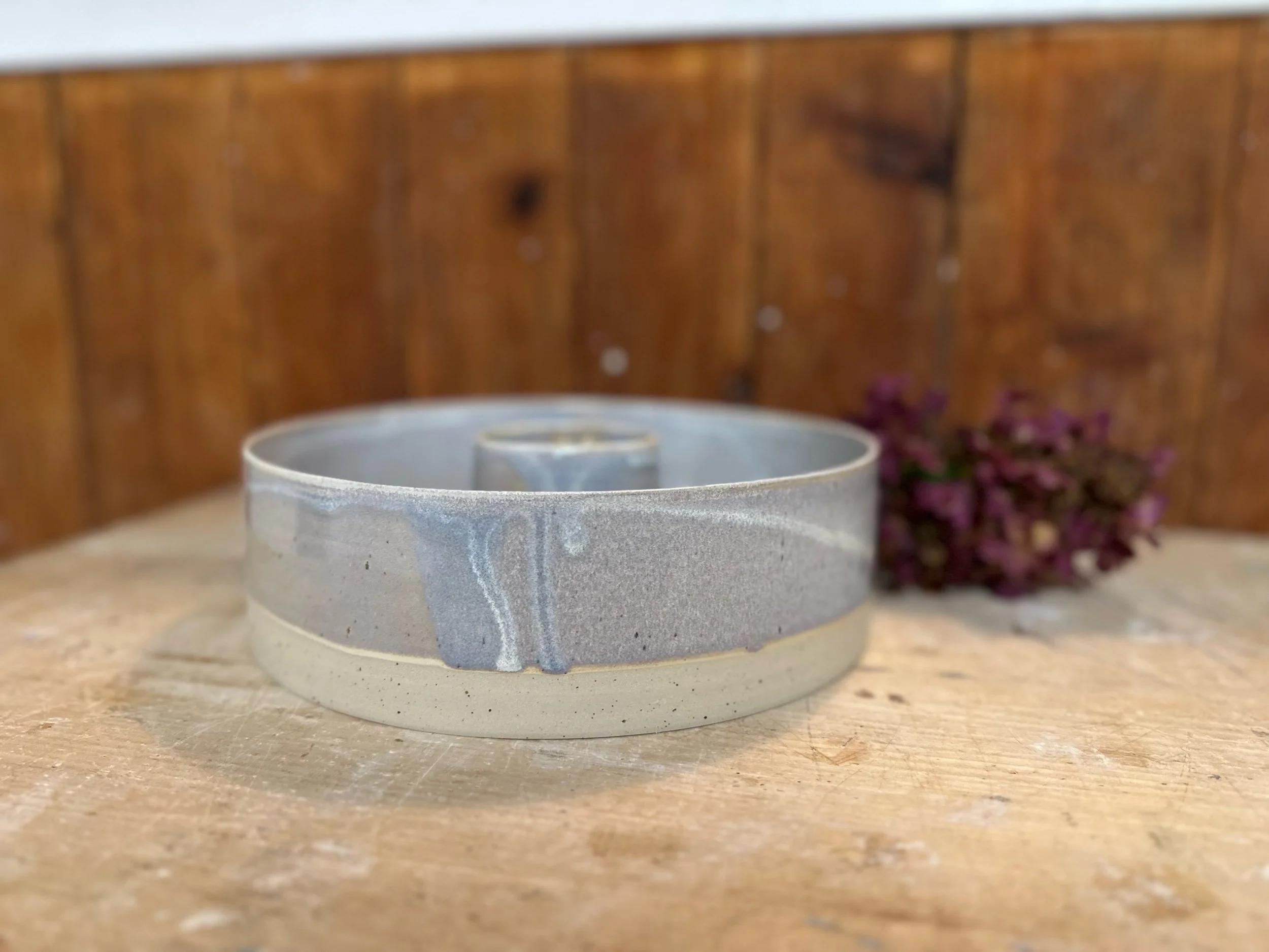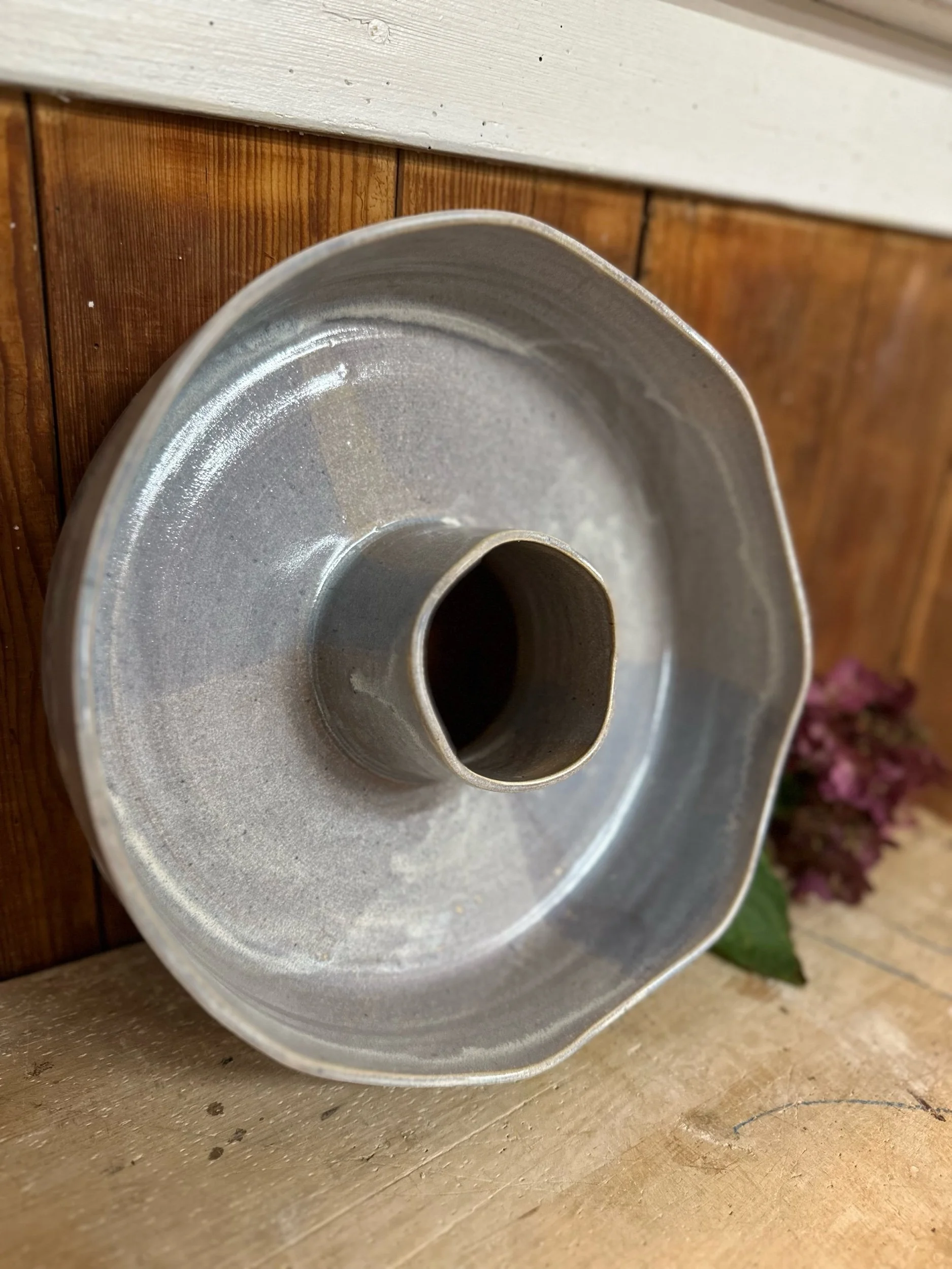 Handgedreht und mit einer blau-lila Glasur versehen. Sie ist übrigens nicht nur als Backform geeignet, sondern auch perfekt als Kranz zu verwenden.