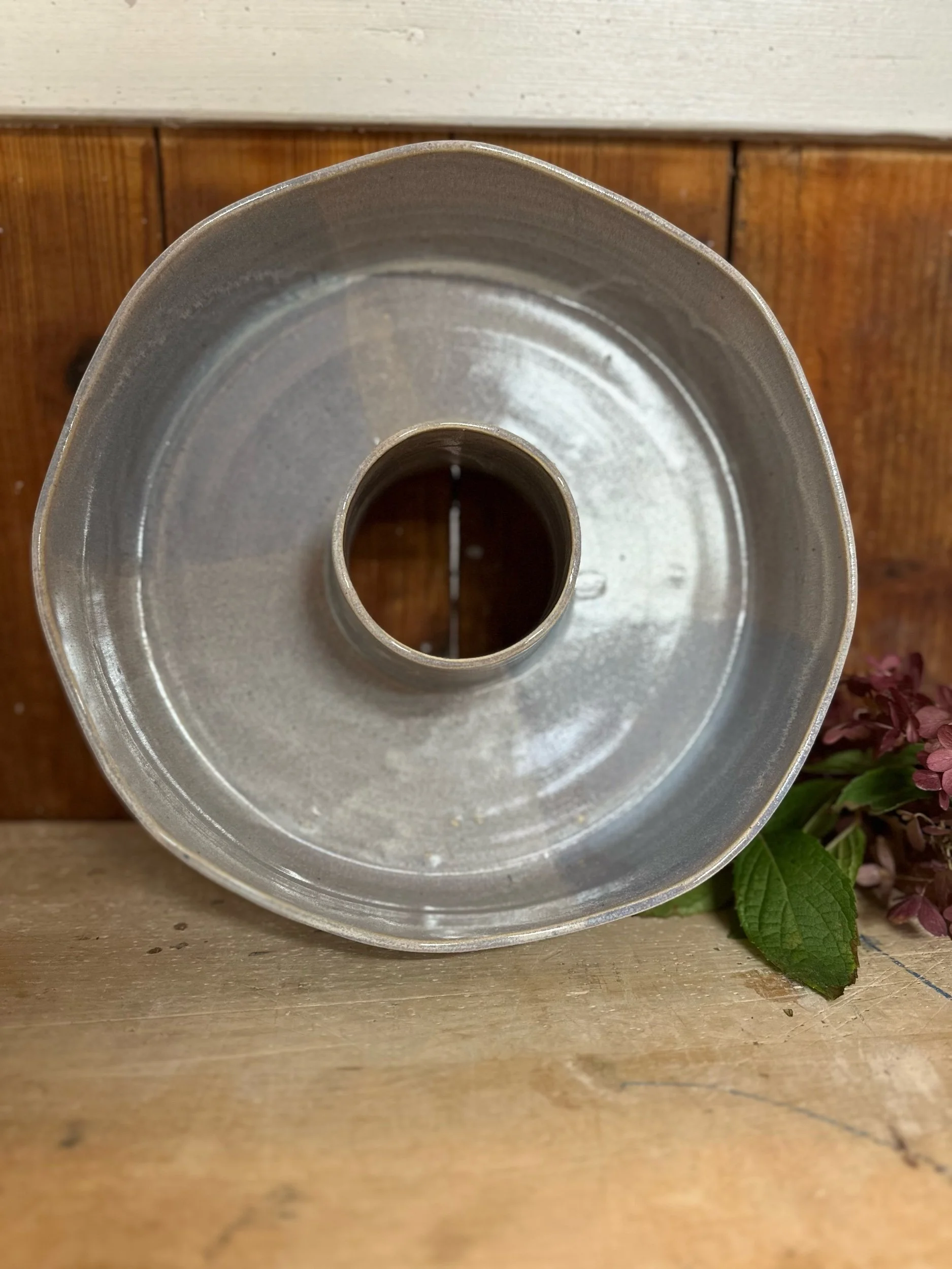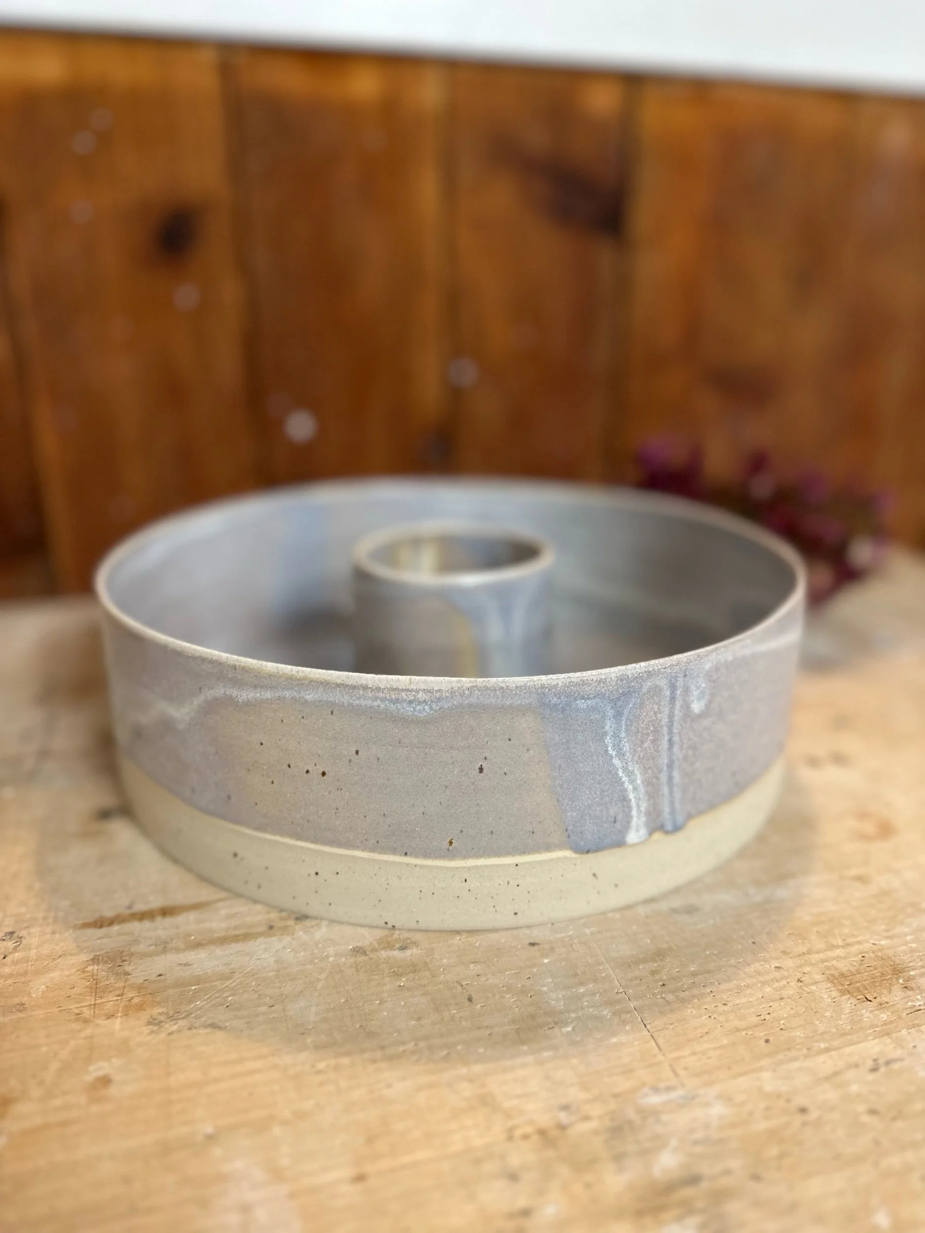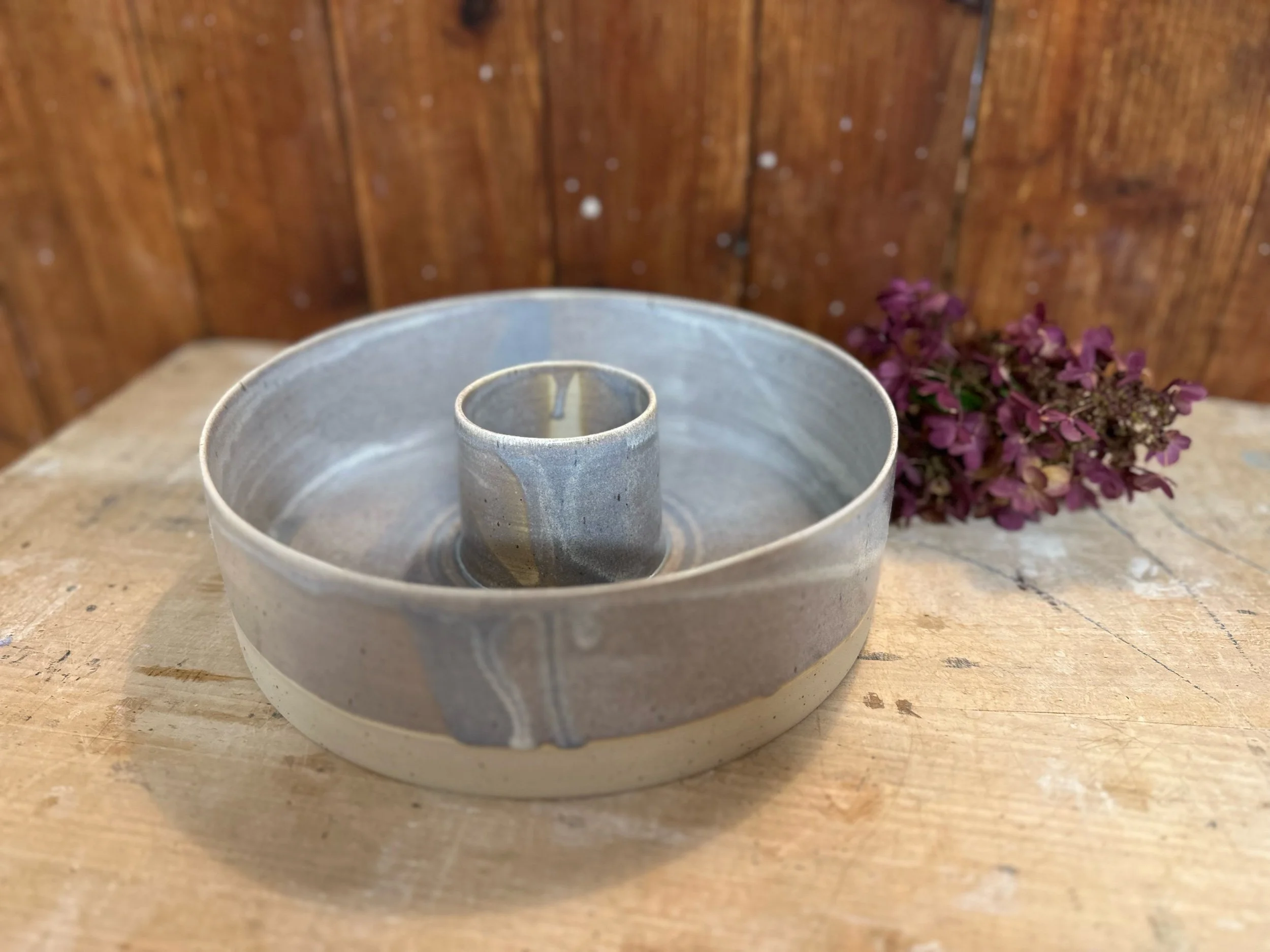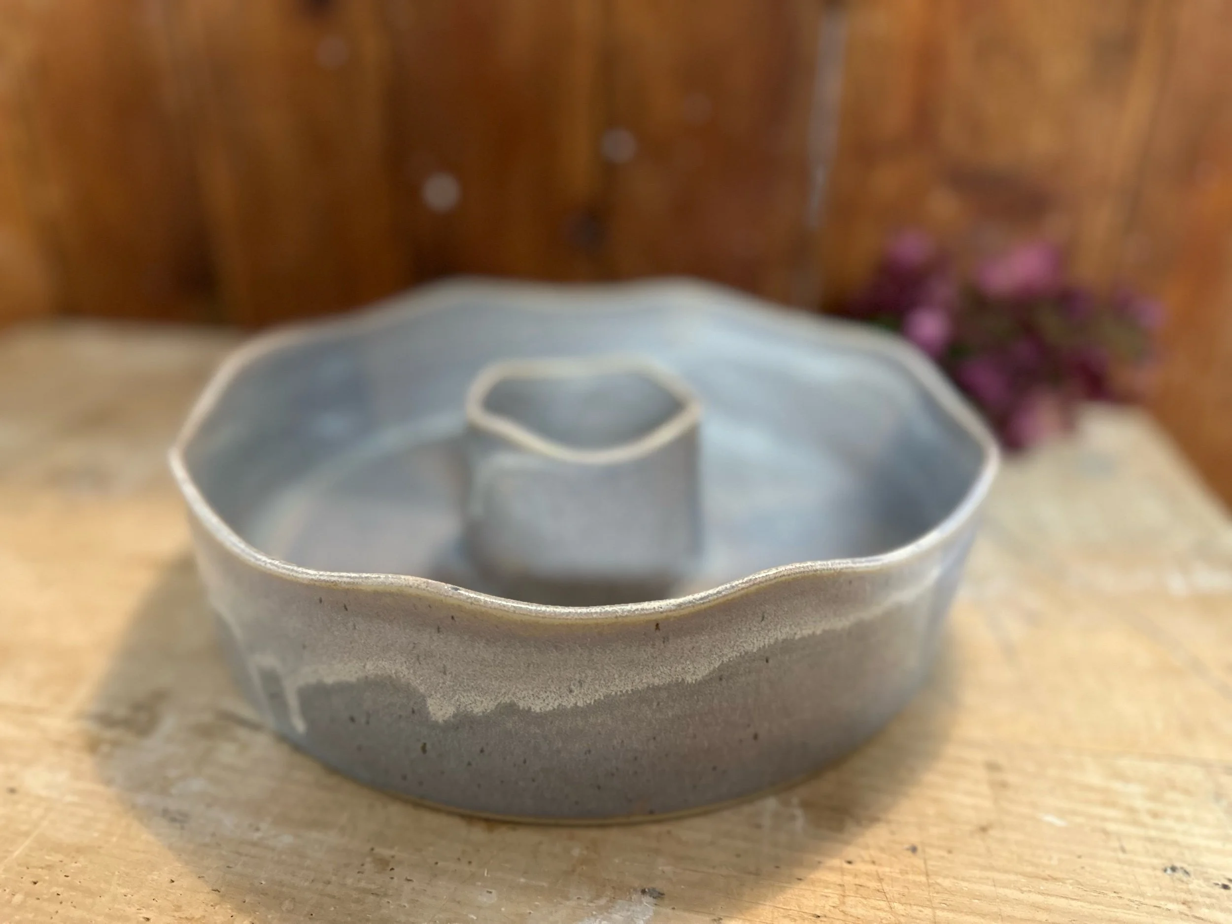 Handgedreht und mit einer blau-lila Glasur versehen. Sie ist übrigens nicht nur als Backform geeignet, sondern auch perfekt als Kranz zu verwenden.