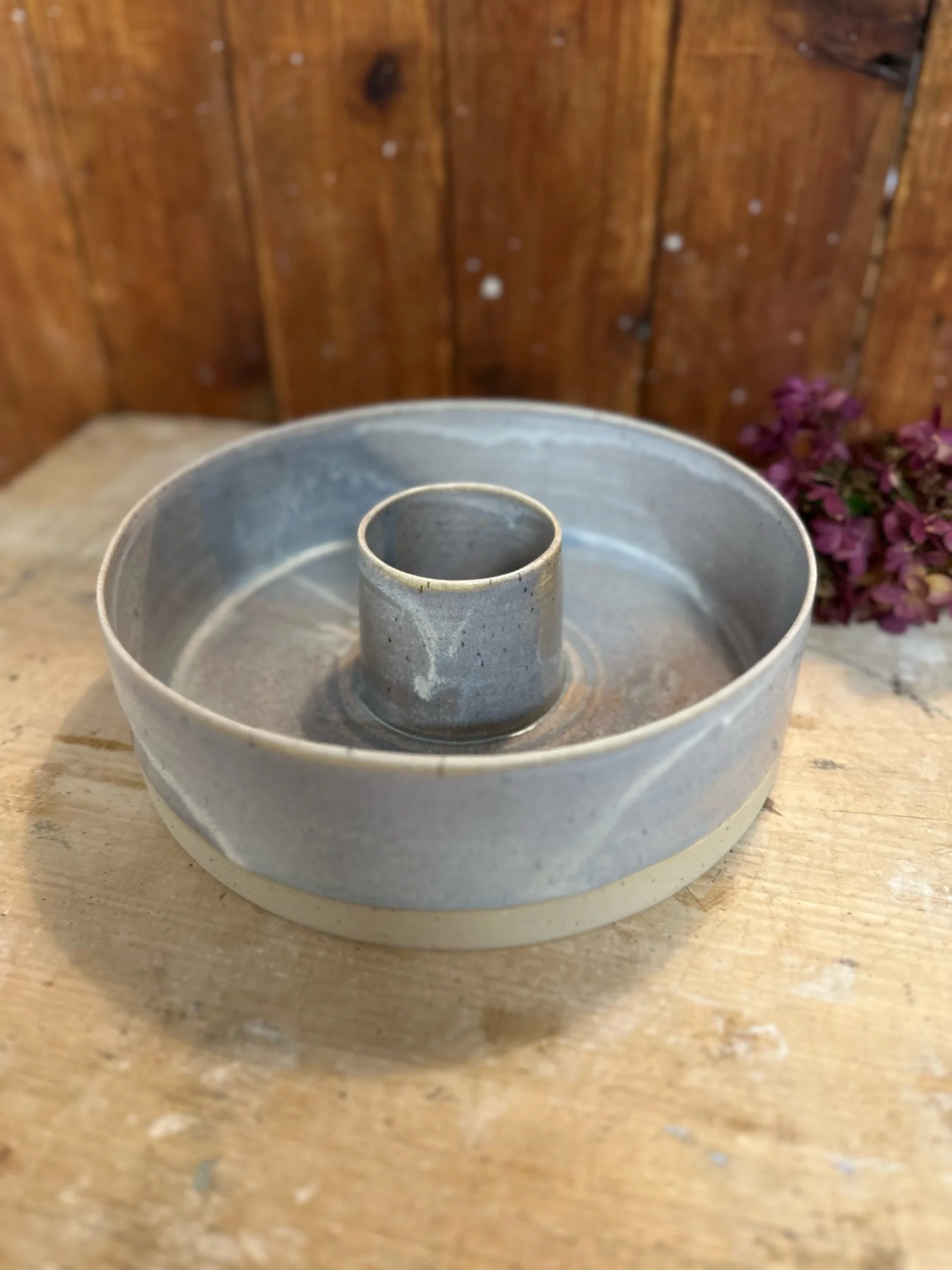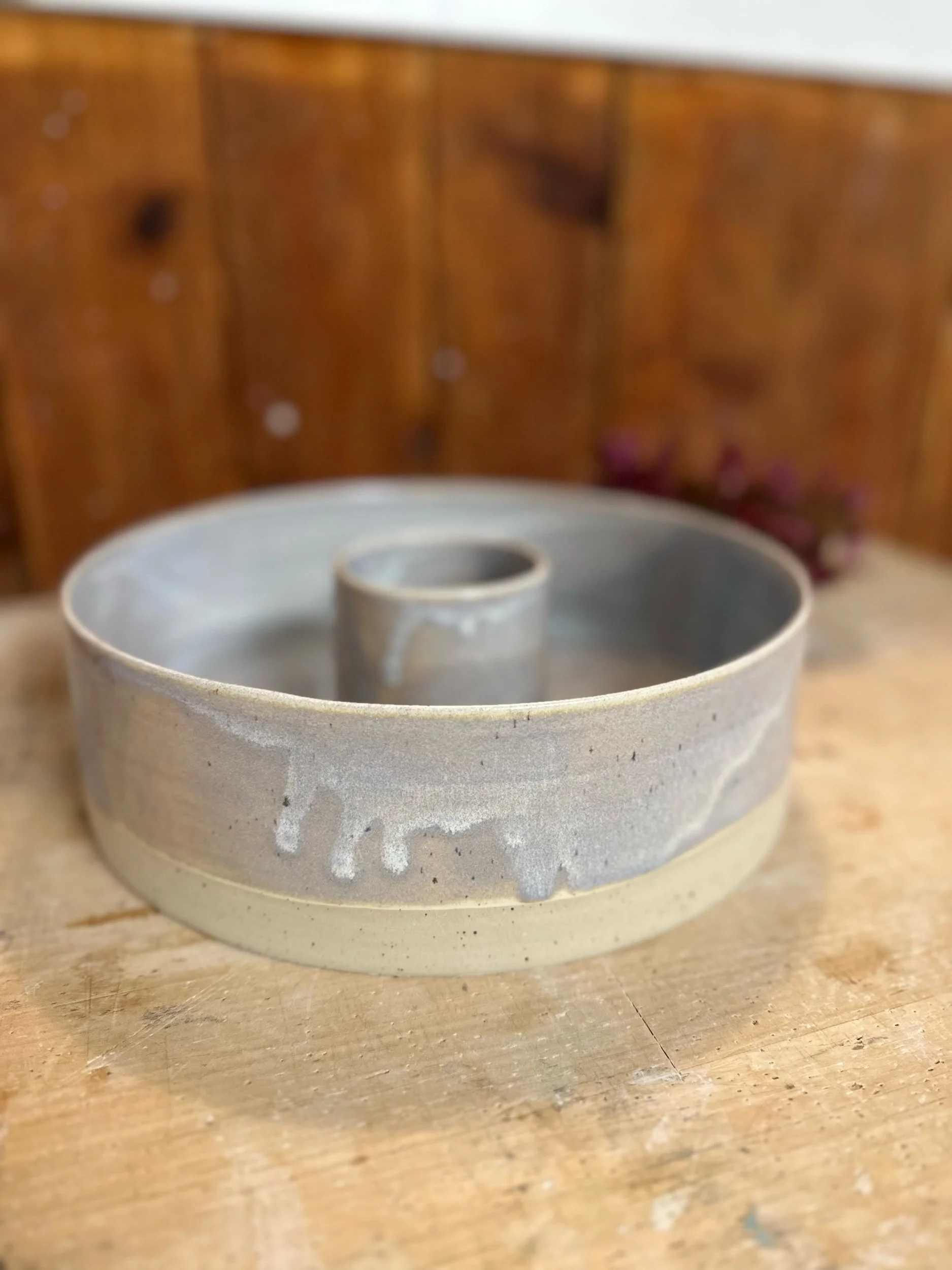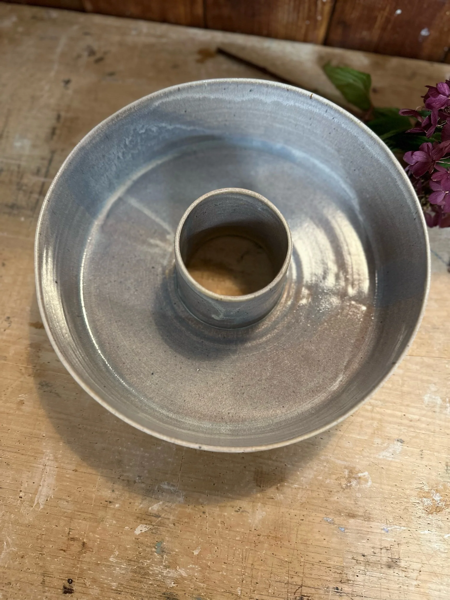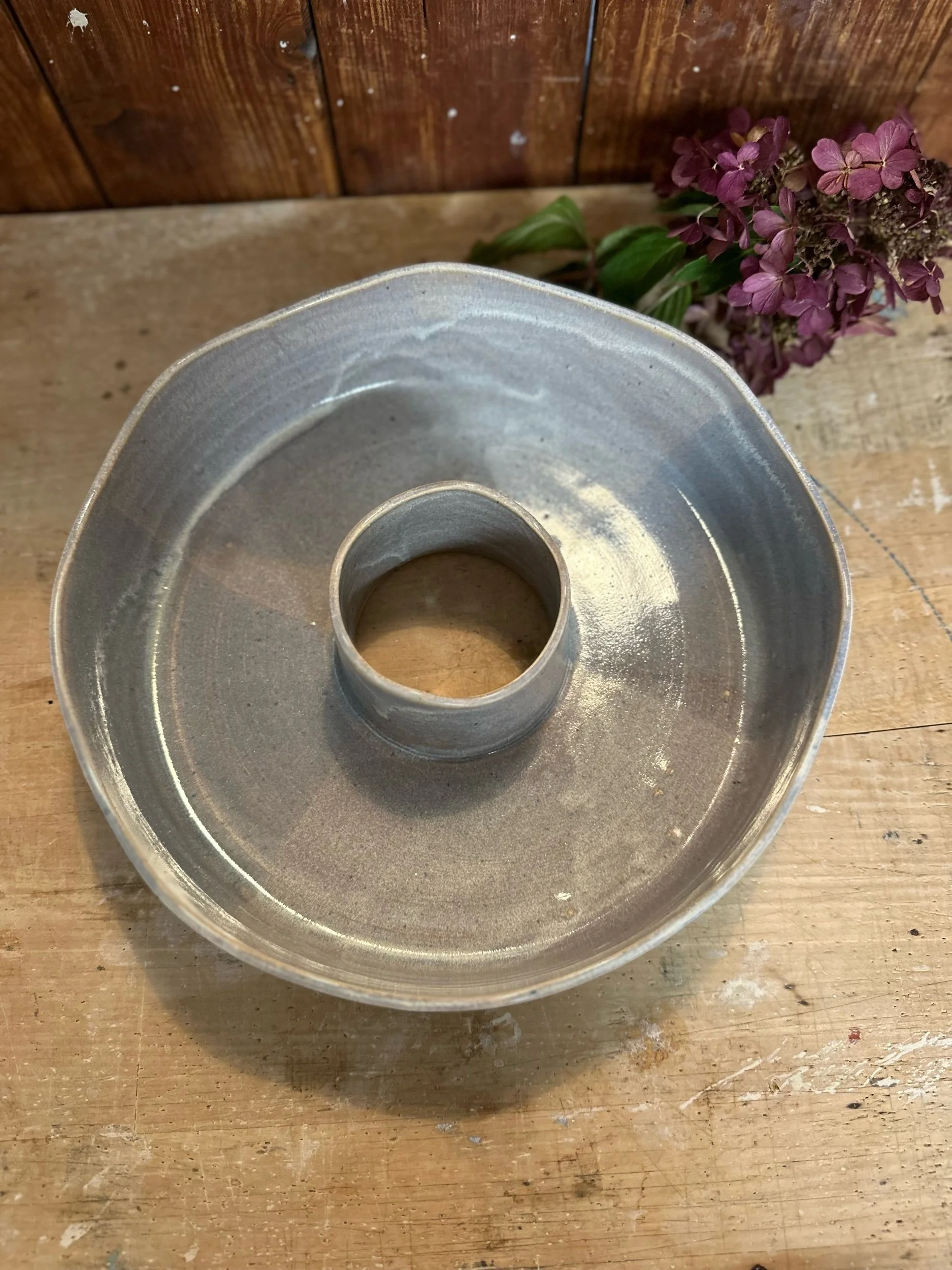 Handgedreht und mit einer blau-lila Glasur versehen. Sie ist übrigens nicht nur als Backform geeignet, sondern auch perfekt als Kranz zu verwenden.