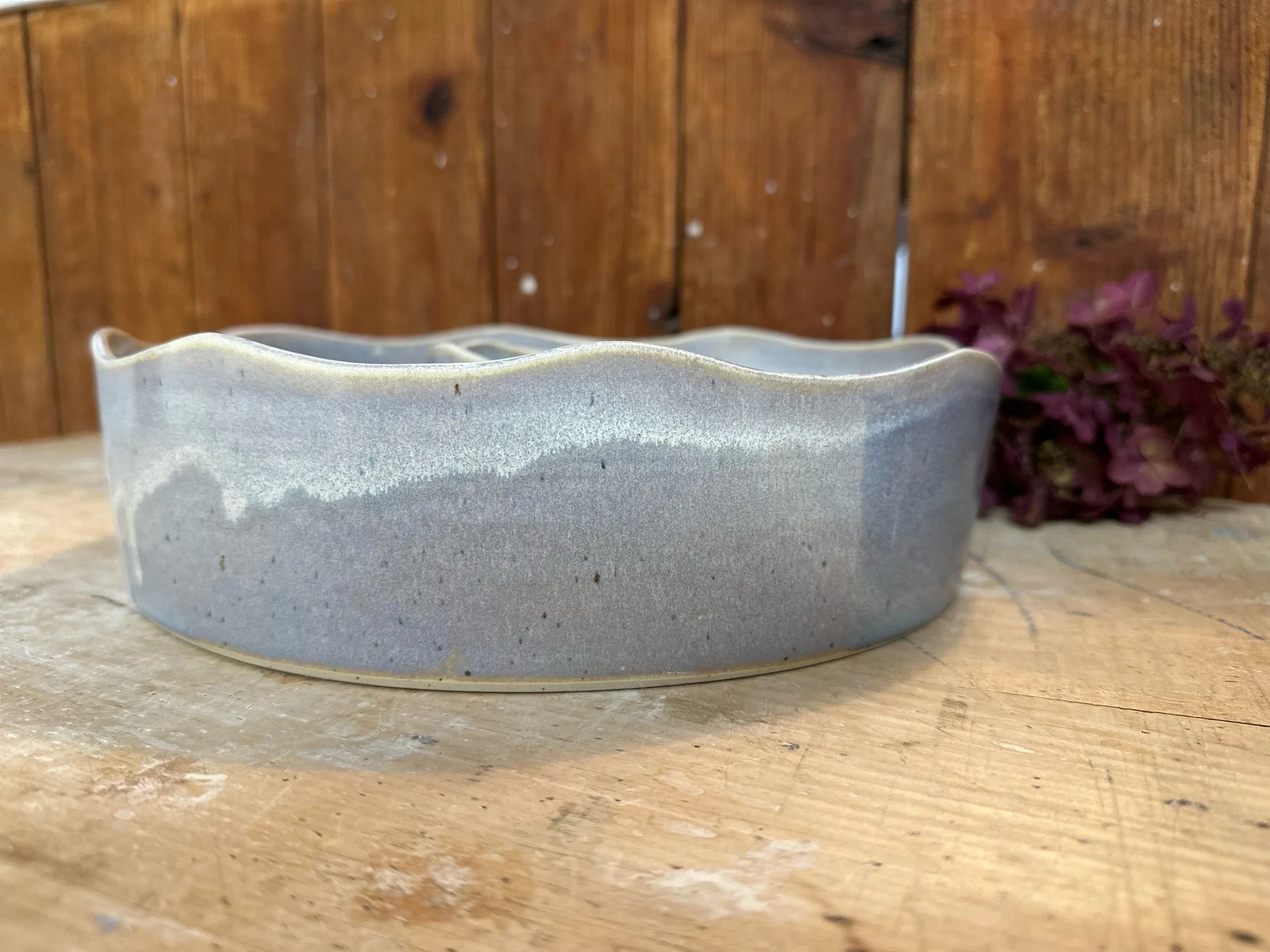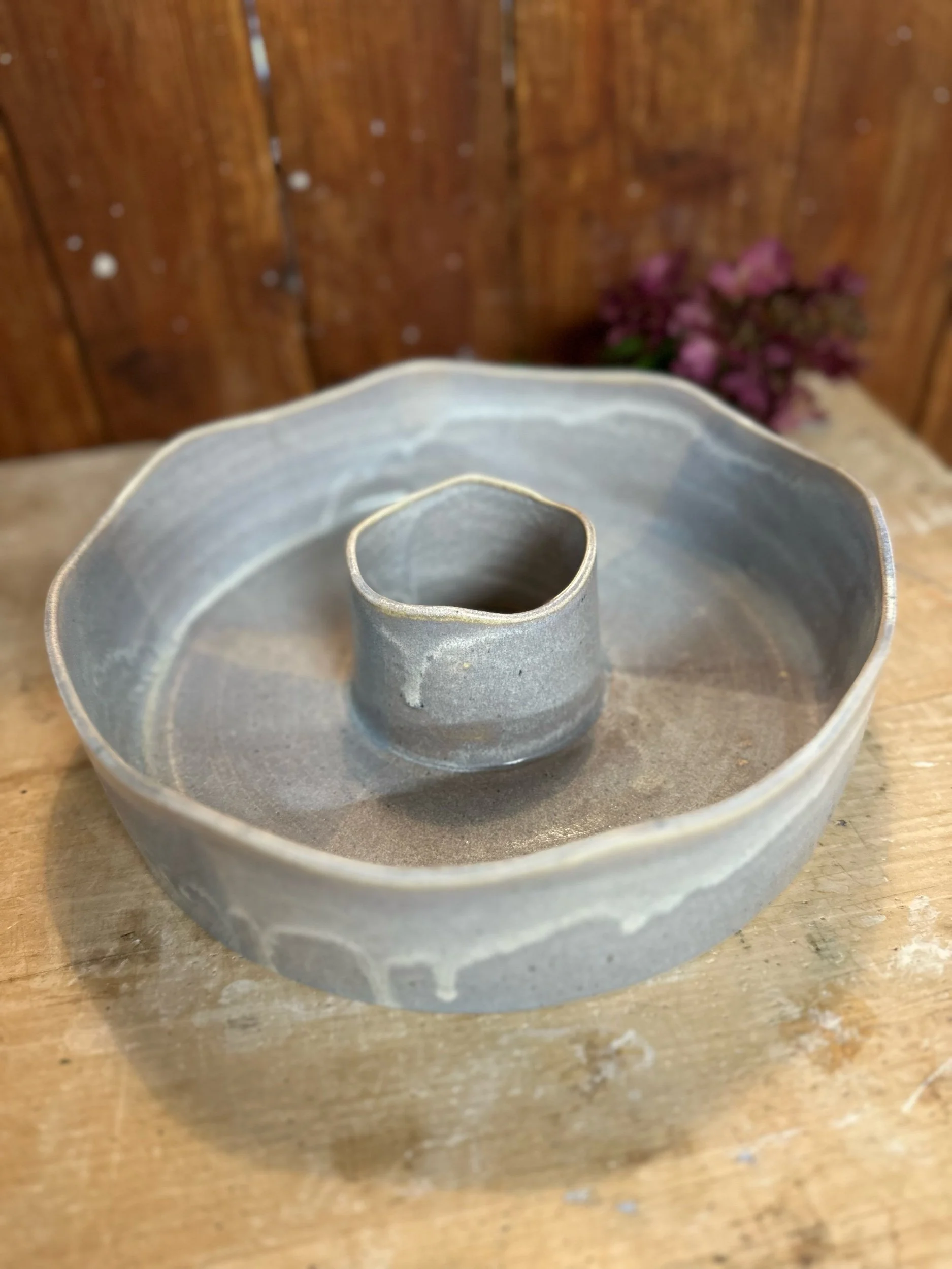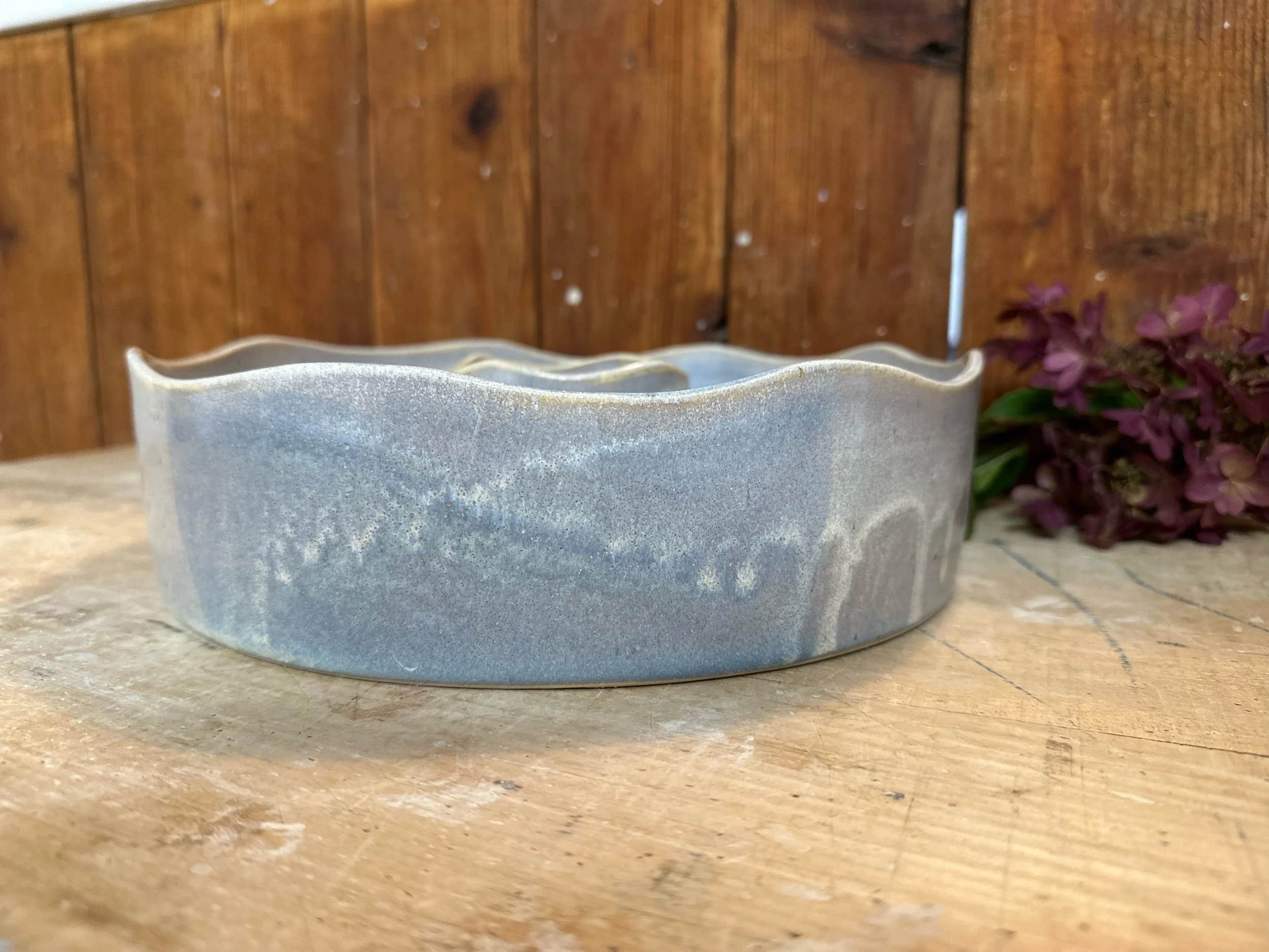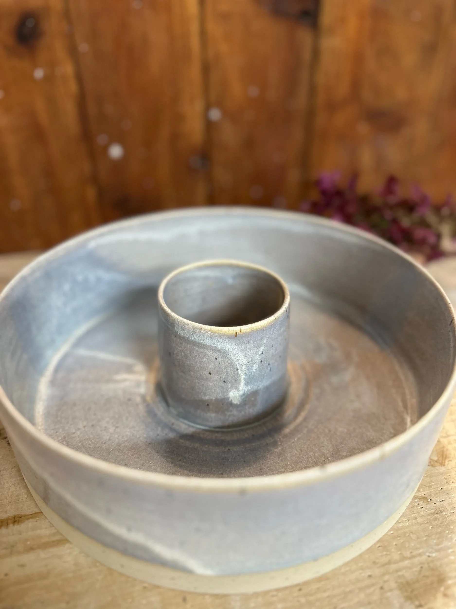 Handgedreht und mit einer blau-lila Glasur versehen. Sie ist übrigens nicht nur als Backform geeignet, sondern auch perfekt als Kranz zu verwenden.